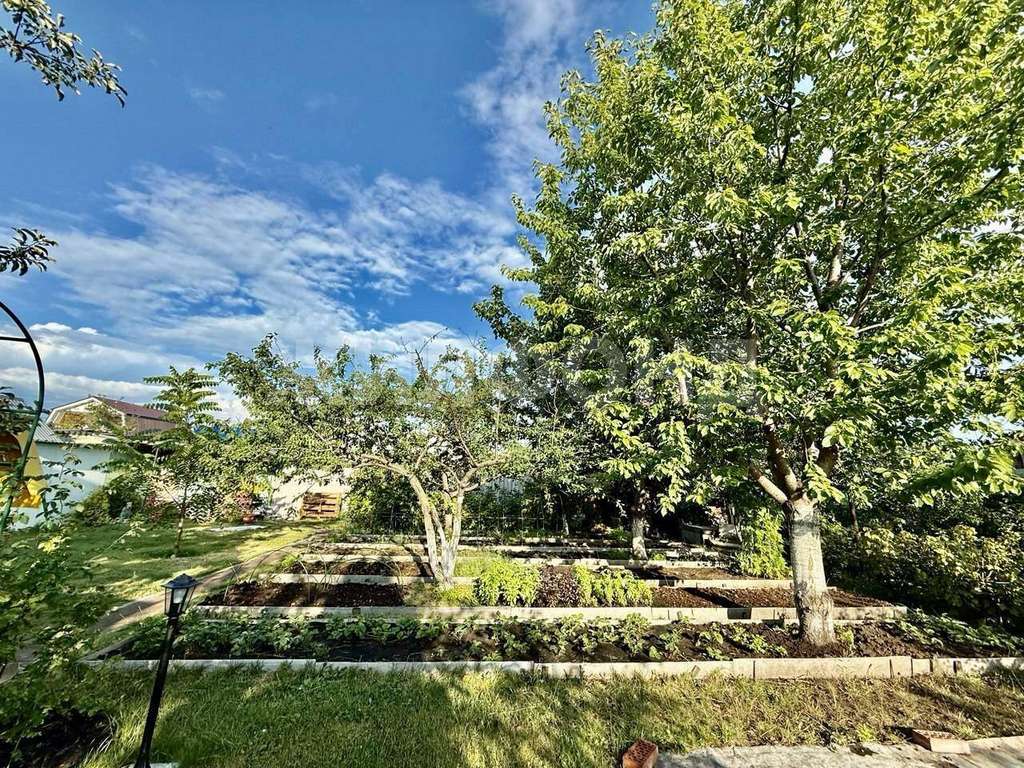 Черешня, абрикос, алыча Кубанская комета, 2 яблони ( зимняя и летняя ) , войлочная вишня, 2 обычные вишни, черноплодная рябина, грецкий орех, шелковица, 4 куста черной смородины, 1 белой смородины, крыжовник, виноград белый и черный, большие грядки клубники.